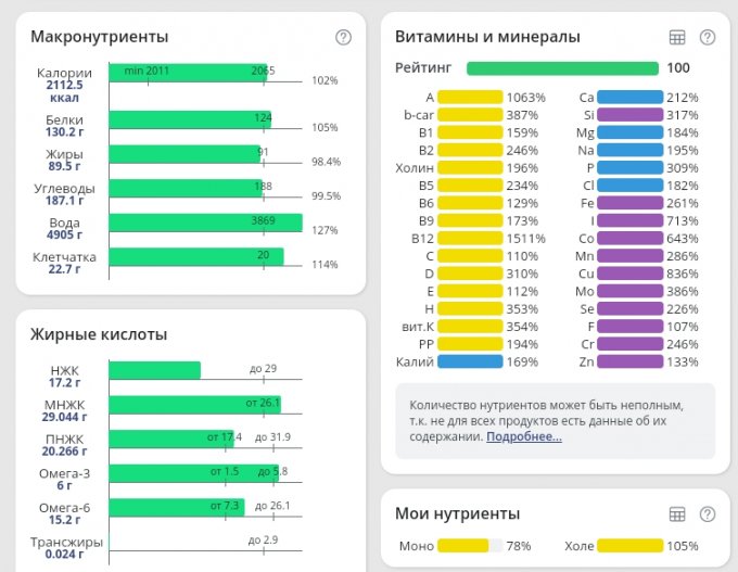 Сегодня высчитал среднее значение за 137 дней КБЖУ и выставил новую диету :-D