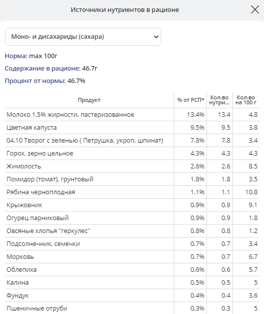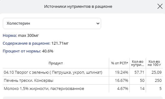 Чтобы увидеть отчеты по питанию и график веса, необходимо войти.