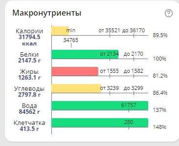 | Итого за день | 6889 | 2030 | 121 | 83 | 186 |