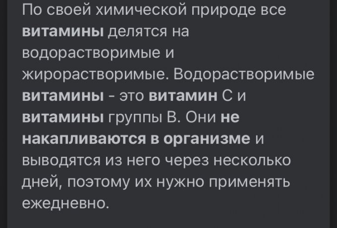 Некоторые витамины не могут скапливаться. Допустим, витамин С. И многие другие. Их нужно пополнять ежедневно и желательно в каждый приём.
