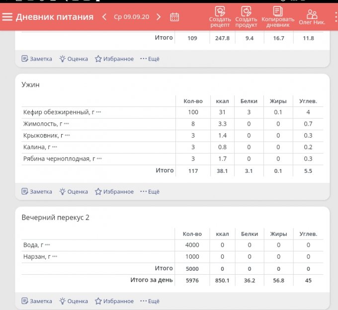 | Итого за день | 5320 | 2179 | 165 | 87 | 177 |