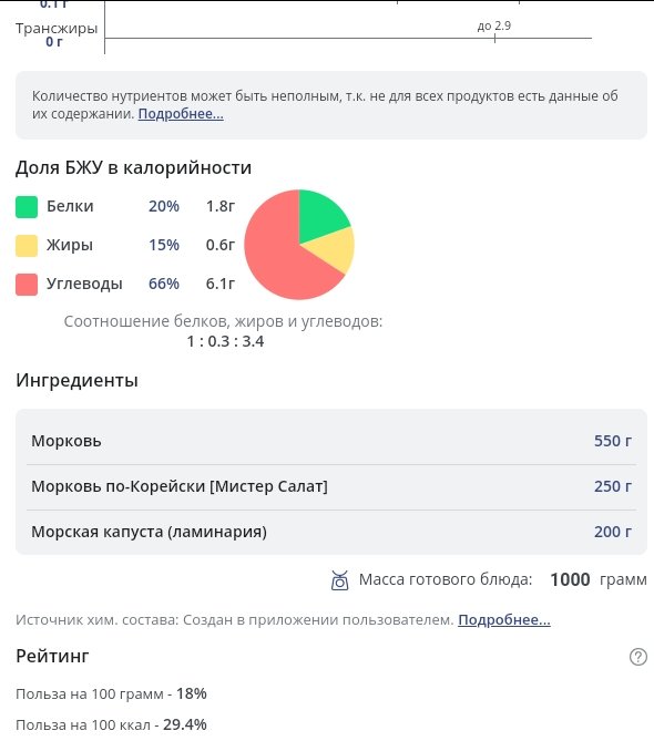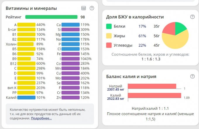 | Кол-во | Калории | Белки | Жиры | Углеводы | |