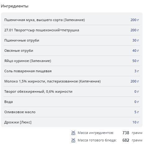 | Кол-во | Калории | Белки | Жиры | Углеводы | |