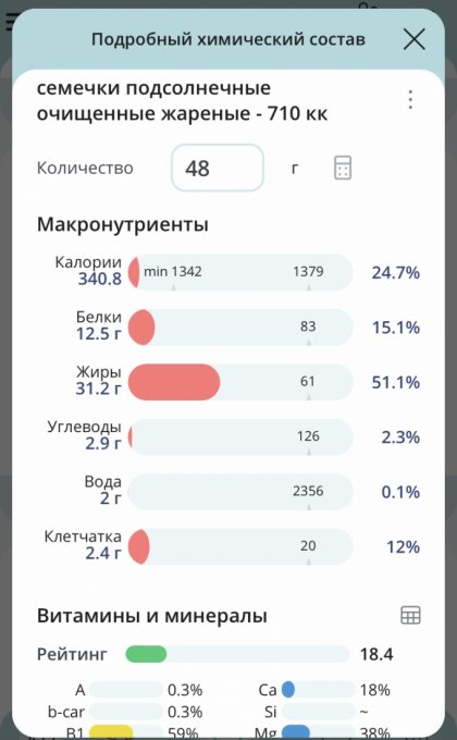 данные берутся из очень старых баз (Скурихин), с тех пор, уверен, многое изменилось и состав продуктов уже не тот. Современная база USDA тоже не идеальна, и в видео, которое я вам порекомендовал посмотреть, об это говорится. Во-вторых, все выращивается в разной почве, обрабатывается по-разному, животных кормят по-разному и т.д. и у меня нет вообще уверенности, что условное яблоко имеет, которое я съел, имеет тот же состав, который указан в любой из баз. Ну и в-третьих, это еще вопрос усвоения.
