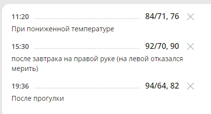 | Итого за день | 800 | 1044 | 50 | 84 | 19 |