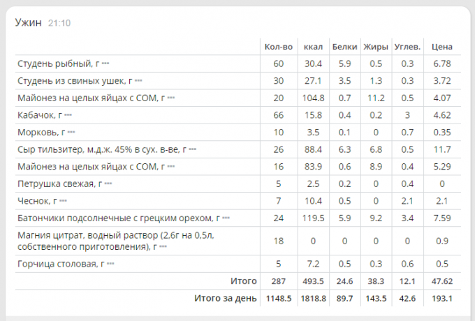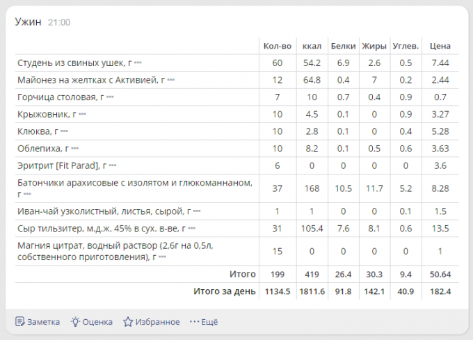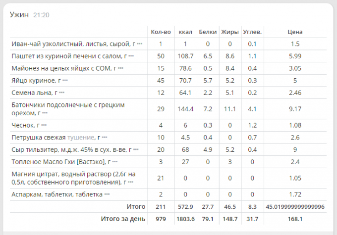 | Итого за день | 1148 | 1818 | 89 | 143 | 42 |