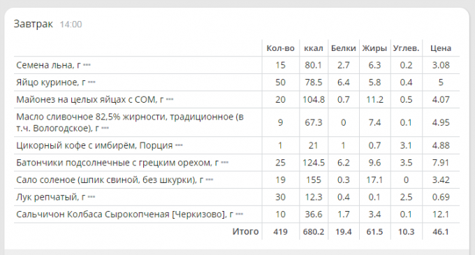 | Кол-во | Калории | Белки | Жиры | Углеводы | |
