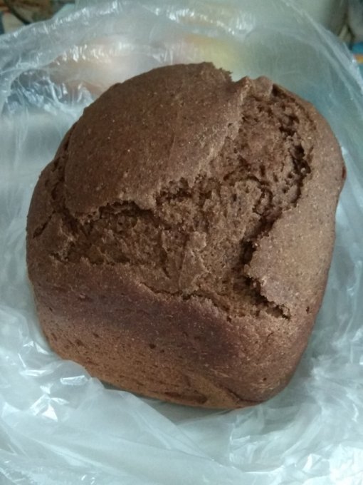 Купили новую игрушку - хлебопечку. Пробовала сегодня сделать простой ржано-пшеничный хлеб, в процессе пришлось добавлять воды, в итоге  плохо поднялся и тесто получилось с комками, но вроде не так заметно, муж попробовал 1 небольшой кусочек, я чуть корки себе отрезала, нам понравилось (с учётом того, что там вообще не было соли). Липковат ещё, липнет к ножу, но это я тёплый резала, может завтра с этим получше будет.