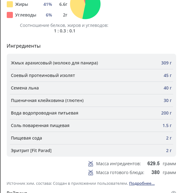 | Кол-во | Калории | Белки | Жиры | Углеводы | |