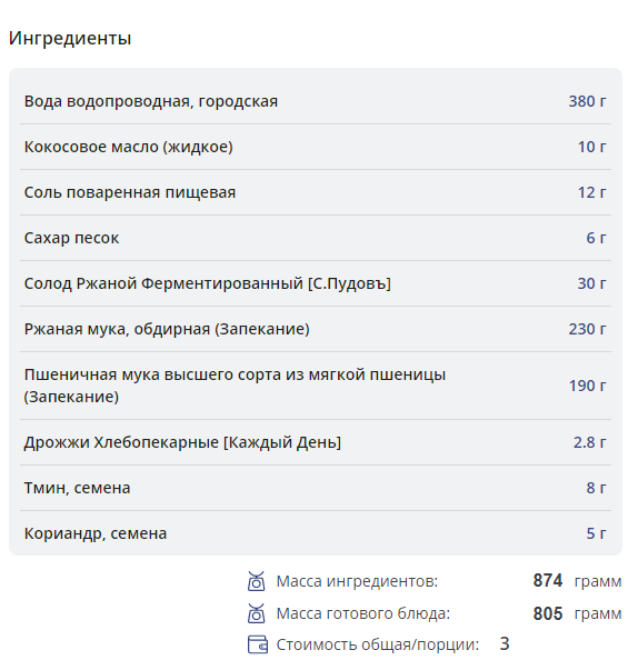 | Хлеб ржано-пшеничный с солодом, тмином и кориандром |