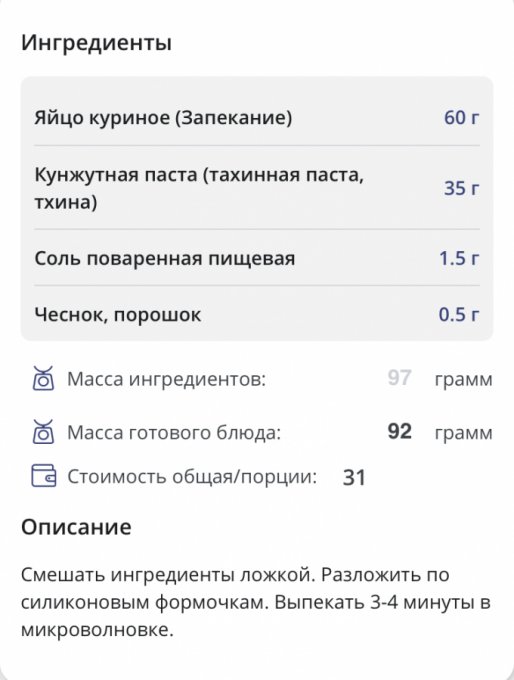 | Кол-во | Калории | Белки | Жиры | Углеводы | |
