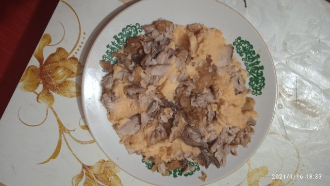 На ужин было картофельное пюре с рыбкой. Итог: 1651 ккал, 95 г