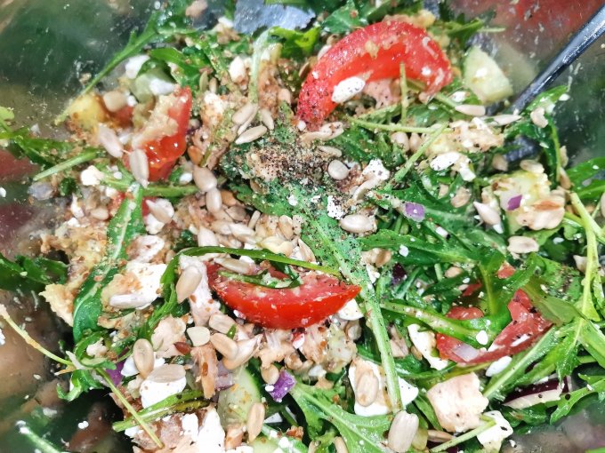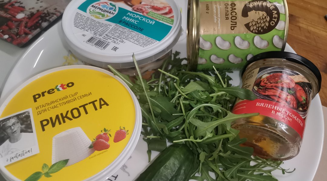 ❗Огурцы нарезать, ингредиенты смешать, кроме рикотты и помидоров.