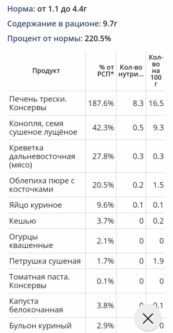 | Брокколи, замороженная, вареная, без соли | 50 г |