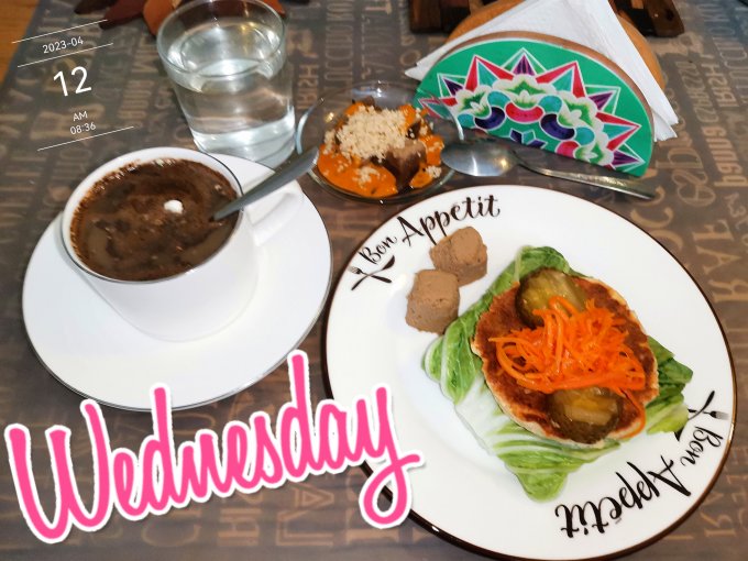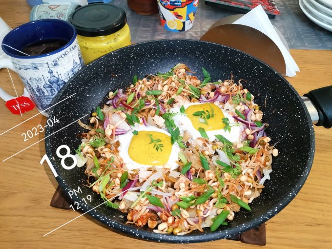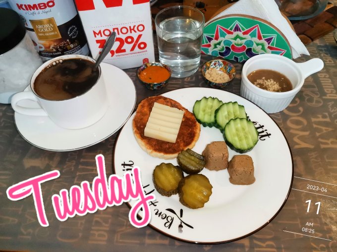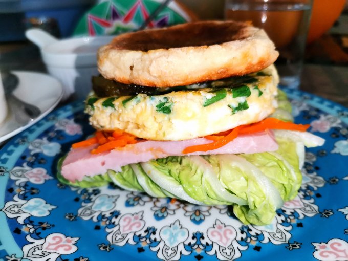 Сырник, морковь и квашеный огурец попозировали для фото завтрака и потом были перевернуты сырником вверх на пекинскую капусту. Так удобнее есть. Ни капли мимо рта не улетело. Этакий гамбургер получился✌️🍔