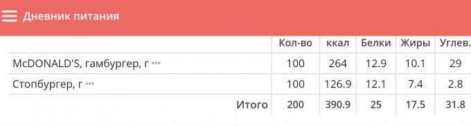 Чтобы увидеть отчеты по питанию и график веса, необходимо войти.