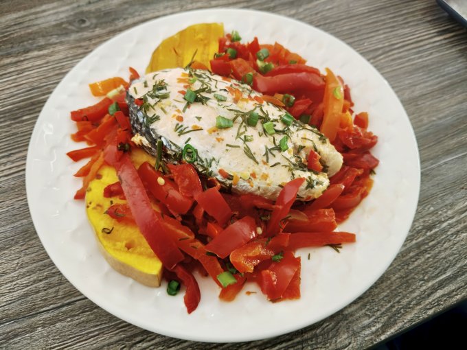 | Перец сладкий красный, замороженный, порезанный, вареный, без соли |