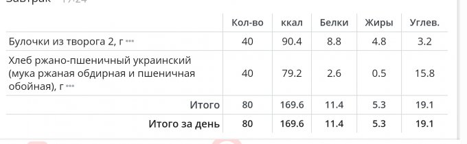 Чтобы увидеть отчеты по питанию и график веса, необходимо войти.