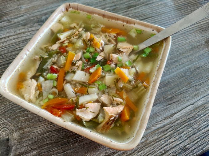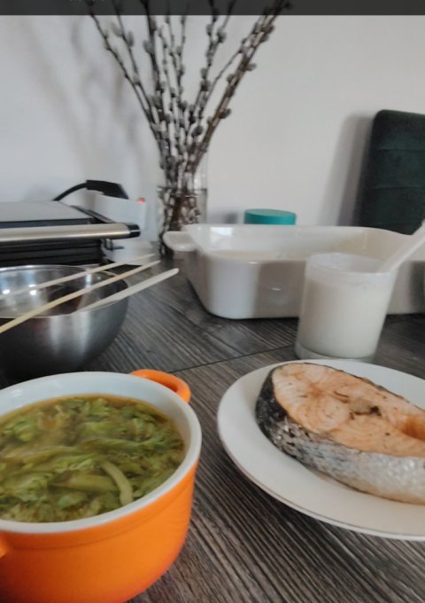 | Рыбный суп горбуша и молоко |