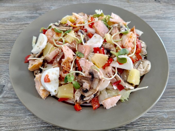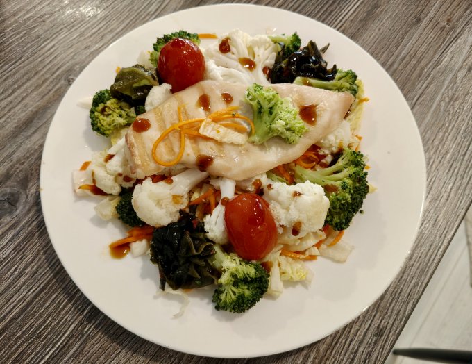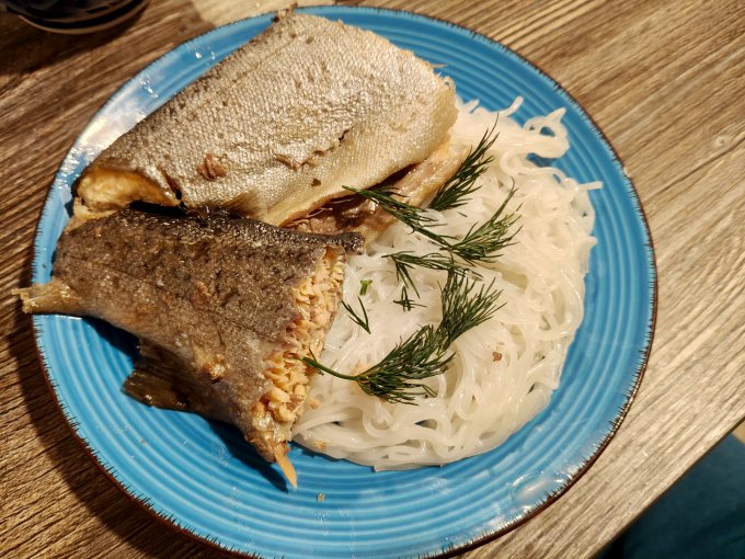 | Форель радужная, разведенная на ферме, приготовленная на жару |