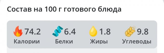 | Кол-во | Калории | Белки | Жиры | Углеводы | |
