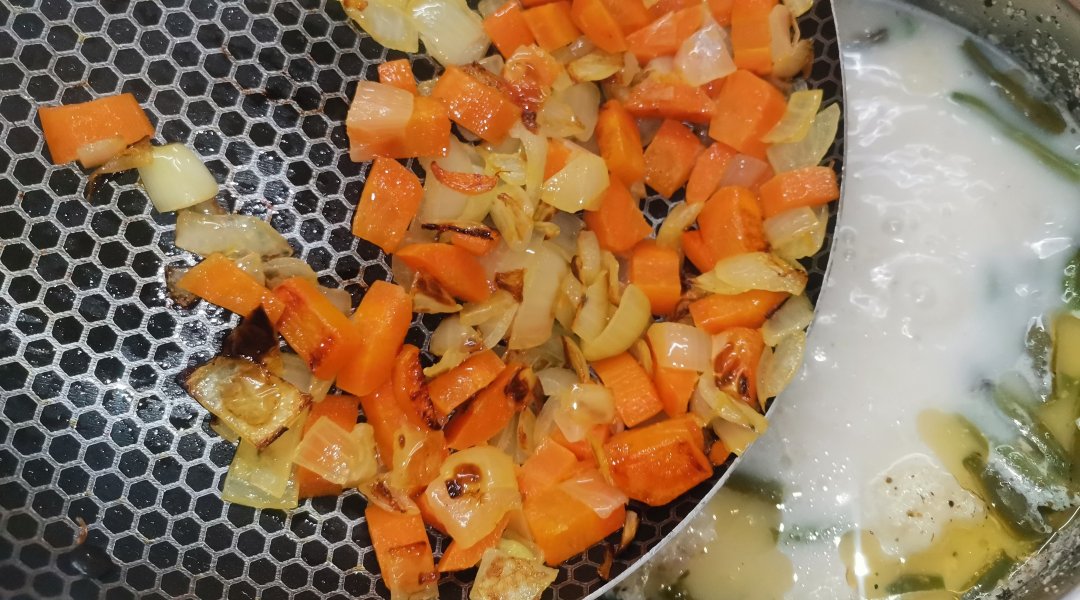 Через 7 минут от начала варки цветной капусты и фасоли добавить