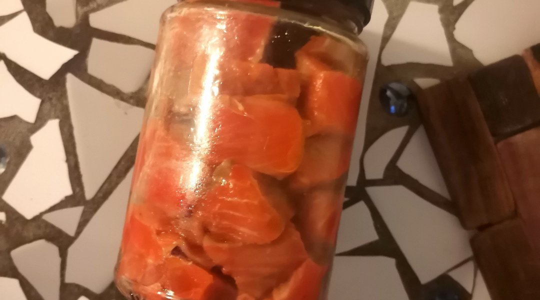 разделывала нерку и кету для засолки,кусочки остались.. по