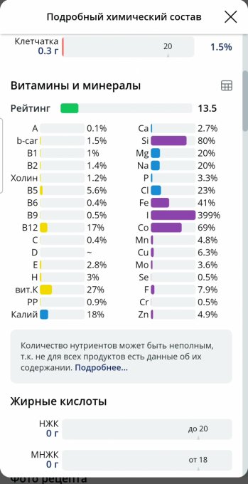 | Кол-во | Калории | Белки | Жиры | Углеводы | |