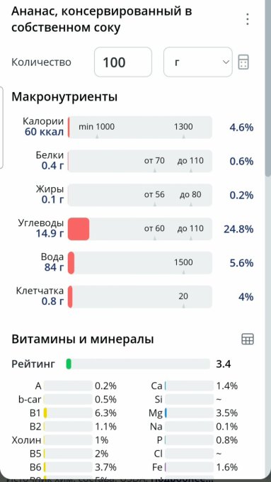| Ананас, консервированный в экстра-насыщенном сахарном сиропе |