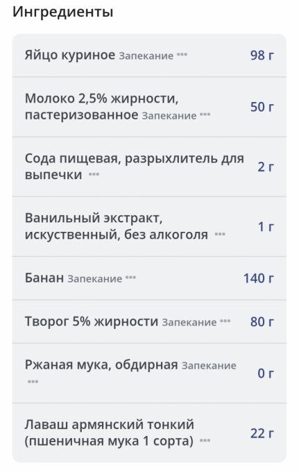 | Кол-во | Калории | Белки | Жиры | Углеводы | |