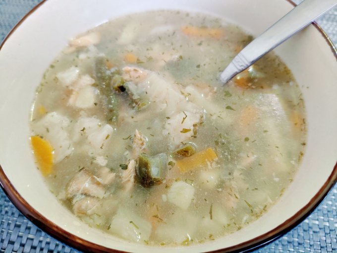 Жир сверху застывал как корочка тонкого льда, толщина была примерно 2-3мм. Я его убирала, выкидывала и только потом ела