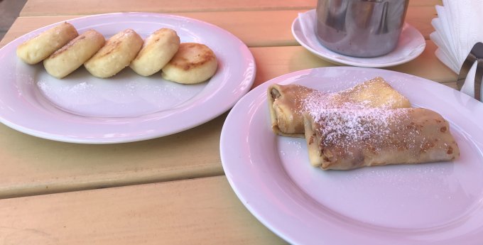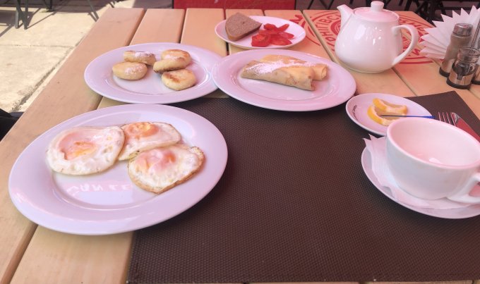 выпечка), блины, фрукты, плюс еда в аэропортах типа хот-догов и