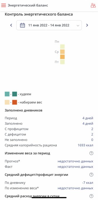 1693 ккал. Первые два дня дефицита были запланированы, а