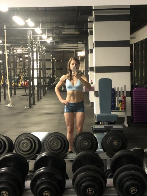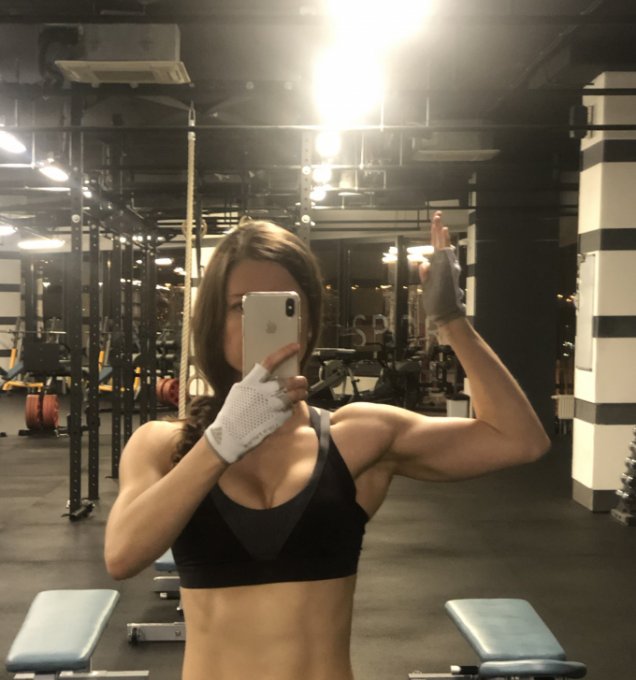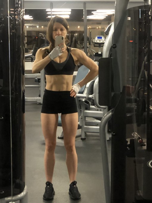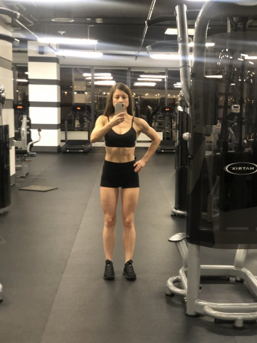 Один месяц и одна неделя силовых тренировок где-то. Я уже