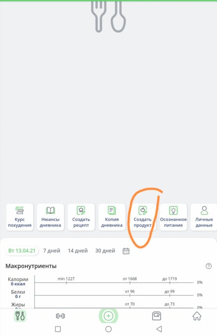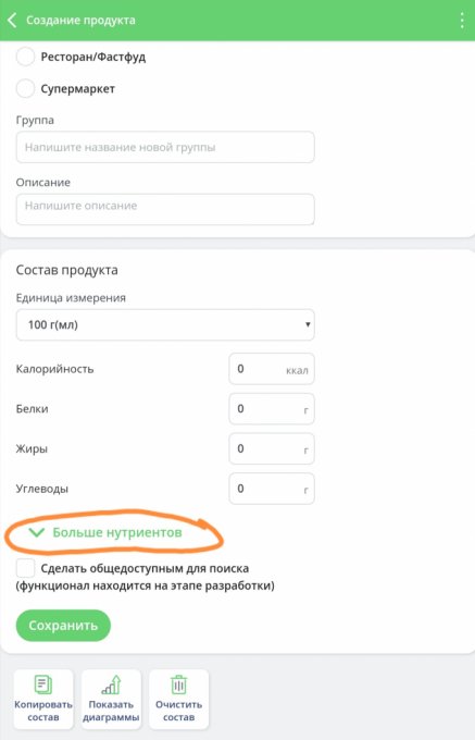 Дневник питания, создать продукт, больше нутриентов... и внести нужное в соответствующую строчку.
