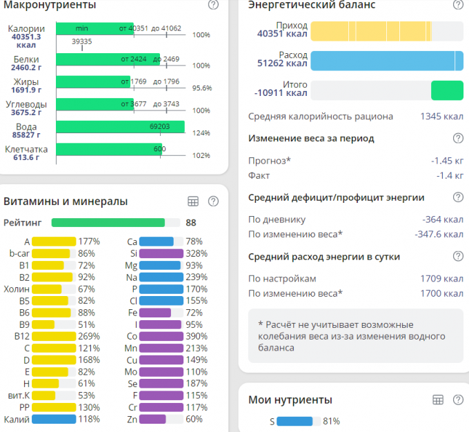 Чтобы увидеть отчеты по питанию и график веса, необходимо войти.