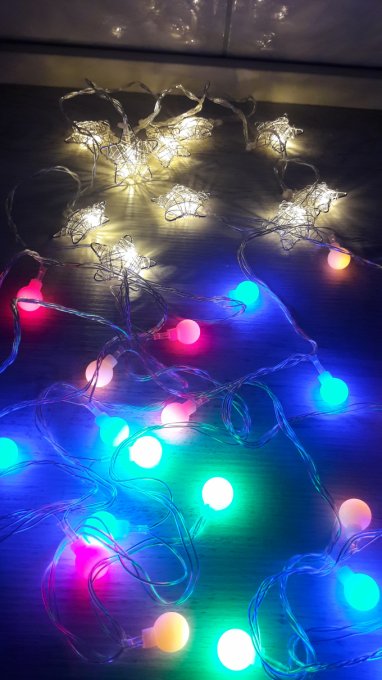 шарики от сети, звездочки от батареек питаются. гирлянды не очень