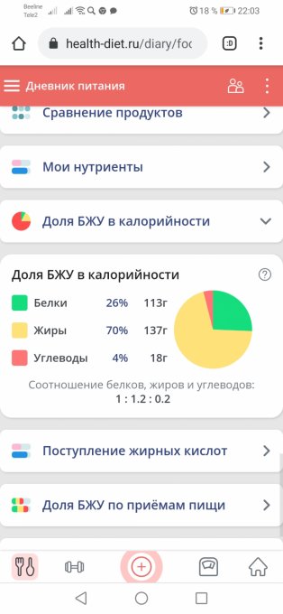 Посмотрела Ваш рацион. Далеко не листала, но вижу что в последние дни у Вас рацион на 1.600-1.700-1.800 ккал. Но в настройках выставлено 1.313. У Вас очень сильно нарушены кето-соотношения, поэтому Вам тяжко войти в кетоз. Так как, по сути, Вы не на кето((