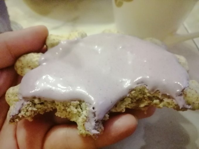 Что ещё ела не помню. Сделала себе десерт: вафлю из миндальной муки, тыквенный семечек и яиц, а сверху домашняя сметана с ежевикой.