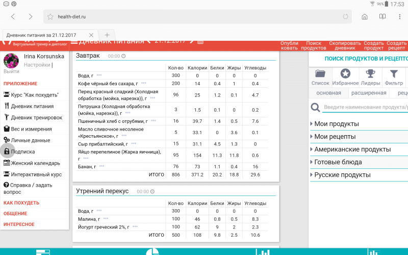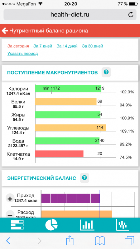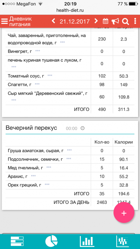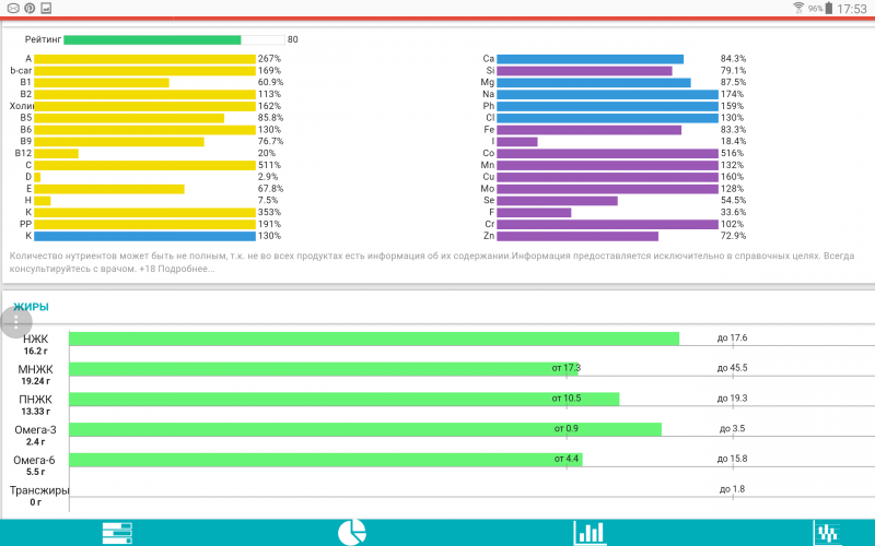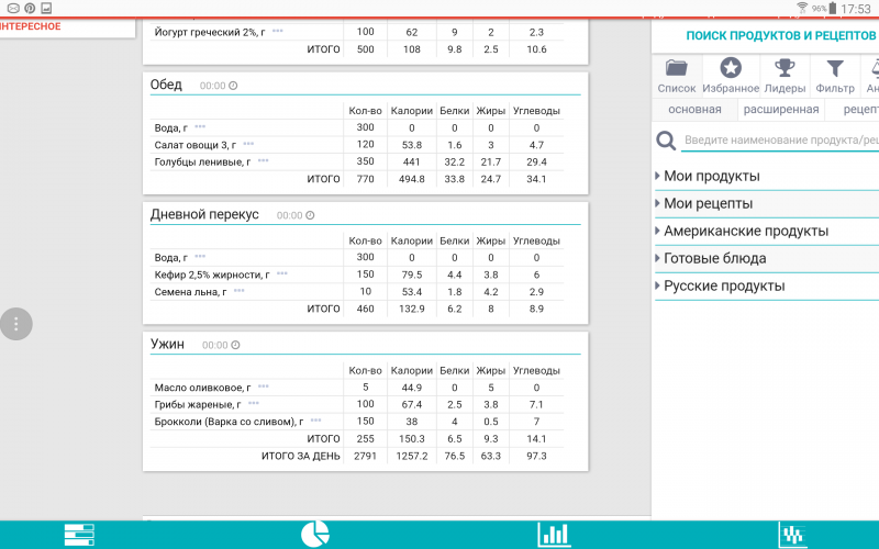 | Итого за день | 3147 | 1424.8 | 35.2 | 128.6 | 29.8 |