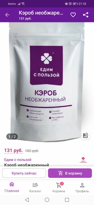 | Углеводы | 2 г | 0.91% | |