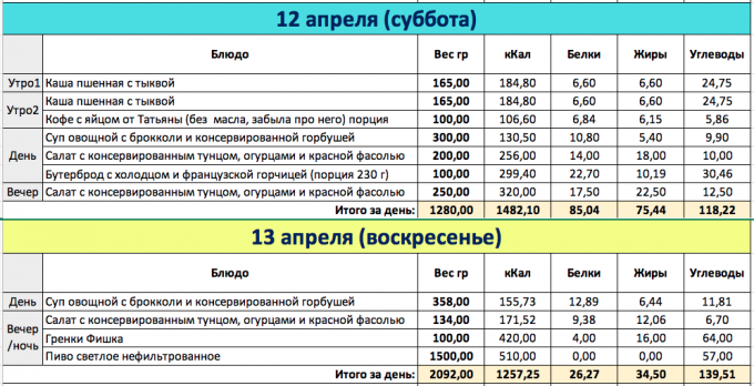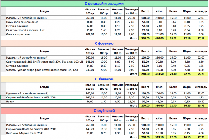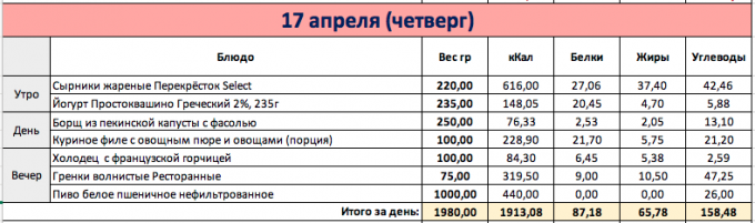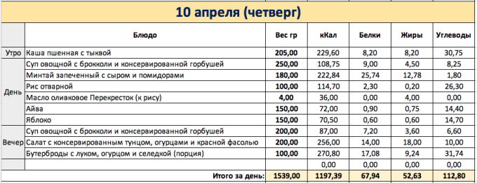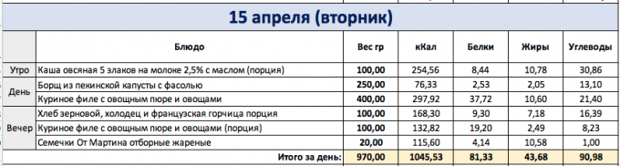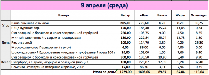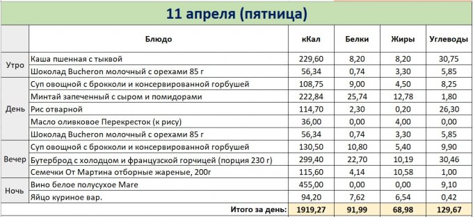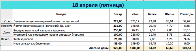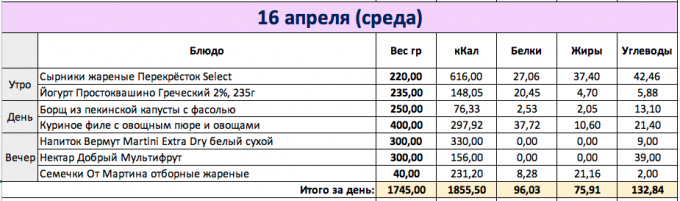 И снова перебор как мне кажется, хотя по калориям вышло в