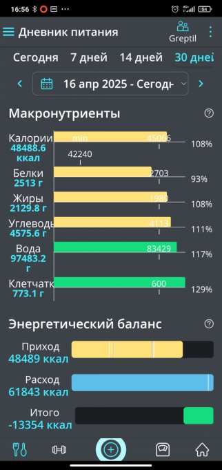 дня у меня перебор белка, согласно моей норме по мнению МЗР,