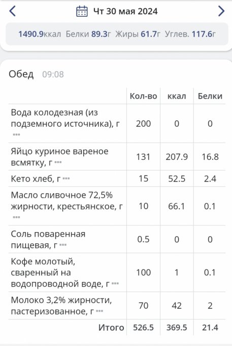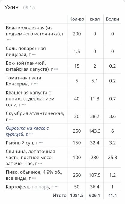 | Кол-во | Калории | Белки | Жиры | Углеводы | |