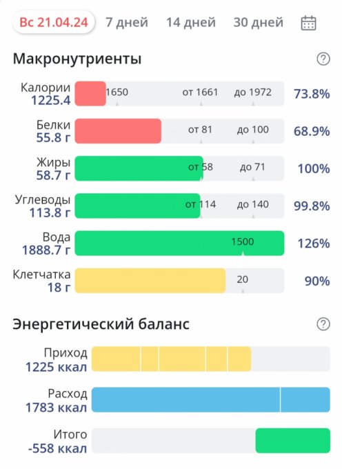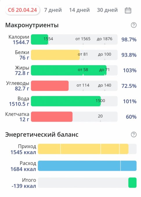 | Итого за день | 2405 | 1650 | 80 | 79 | 148 |
