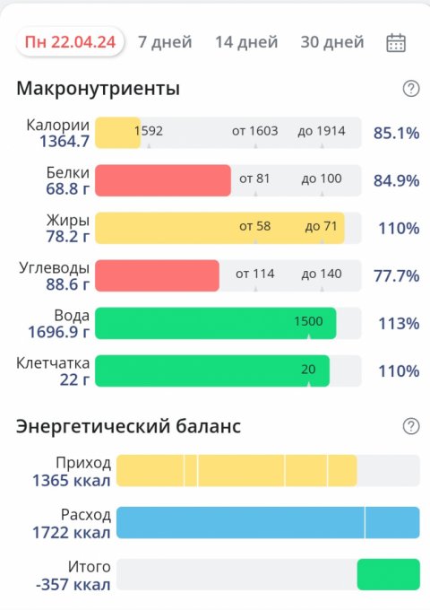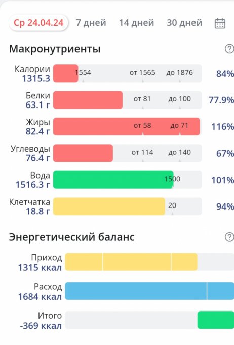 | Итого за день | 2436 | 1400 | 76 | 65 | 122 |