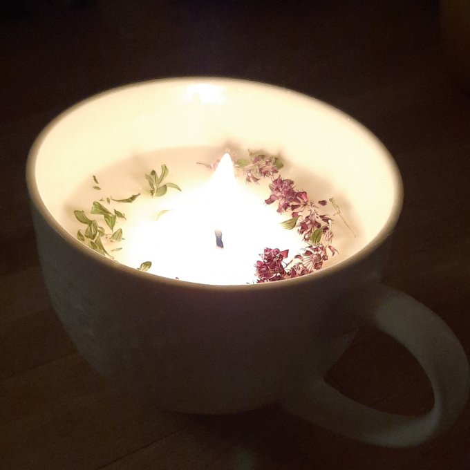 А ещё я тут попробовала сама свечи делать в кружке. Мне очень понравилось. Правда душевно получается, и так просто и зажженная