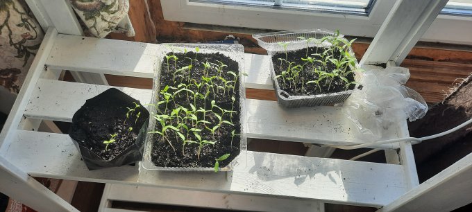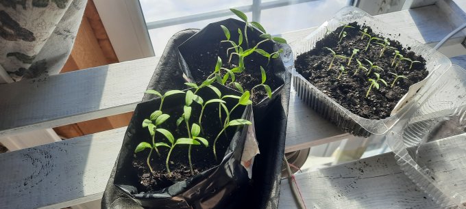 немного рассады уже в начале февраля: томаты, перцы, баклажаны.