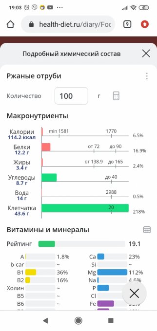 1. Отруби ржаные, лучшее соотношение клетчатки и углеводов среди