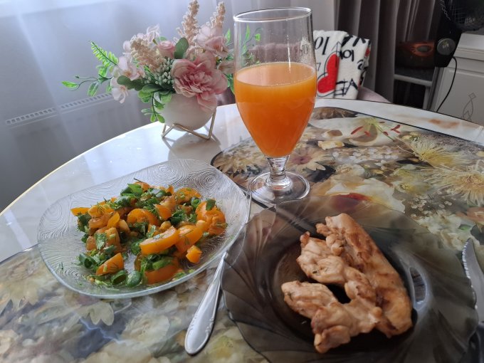 яркий и солнечный как июльский день: Куриная грудка гриль, салат из